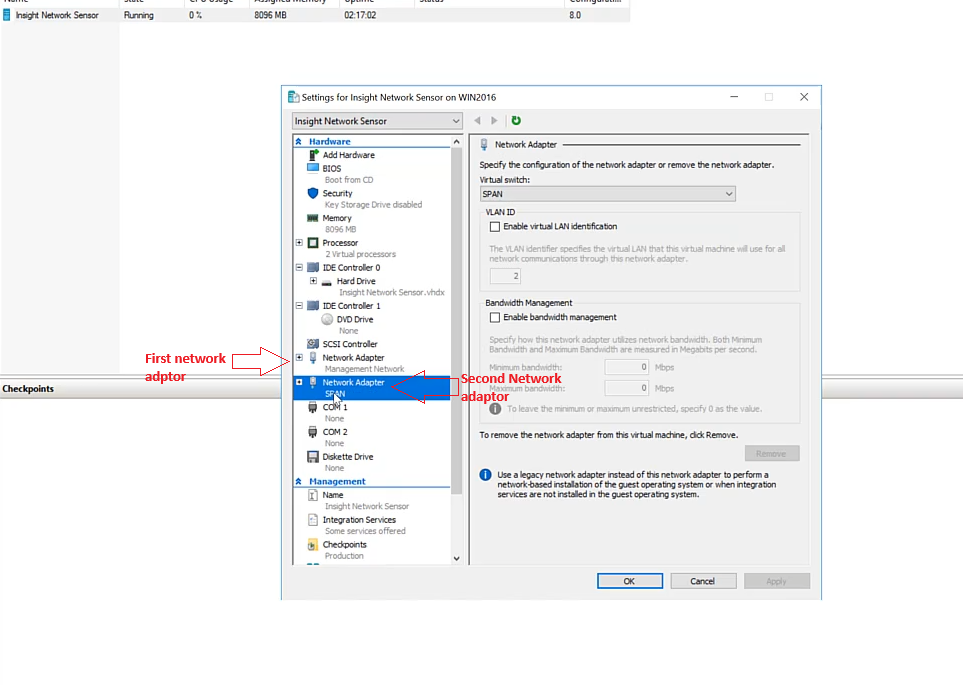 This article describes about the process of configuring Hyper-V to facilitate the deployment of a network sensor.